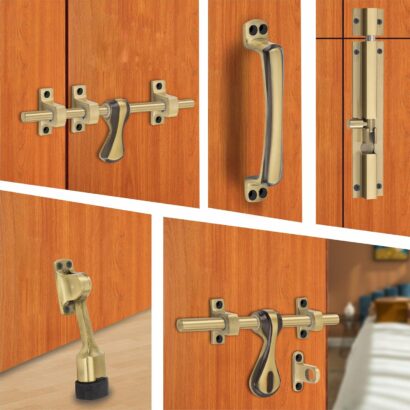 - 1 Big AL-Drop 10 Inch approx., 1 Small AL-Drop 10 inch approx., 1 Tower bolt 7 inch approx., 2 Cabinet Handle 6 Inch approx., 1 Stopper 5 inch approx. and Screws