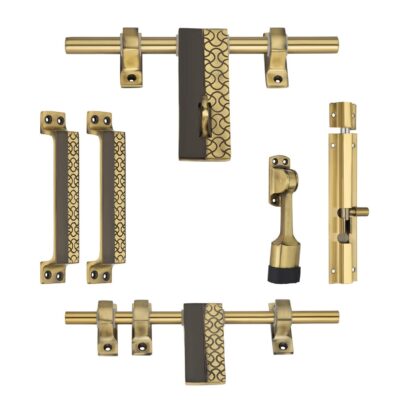 - 1 Big AL-Drop 10 Inch approx., 1 Small AL-Drop 10 inch approx., 1 Tower bolt 7 inch approx., 2 Cabinet Handle 6 Inch approx., 1 Stopper 5 inch approx. and Screws